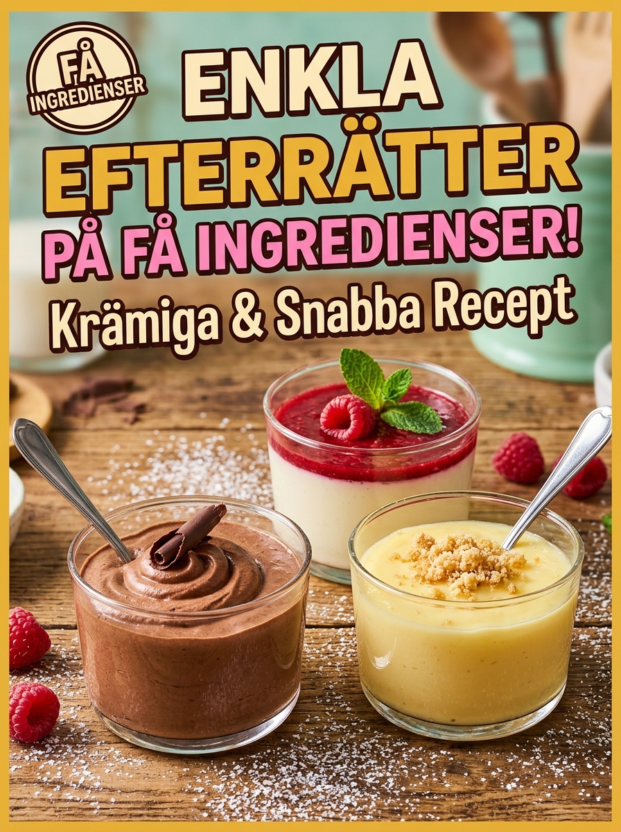 Skafferiet ekar tomt men efterrättssuget är starkt? Inga problem! Dessa7 krämiga desserter kräver max 5 ingredienser och är klara på under 20 minuter. Vi bevisar att färre ingredienser inte betyder sämre smak – tvärtom! Med färre komponenter får varje ingrediens chansen att glänsa. Perfekt för studenten, utkörningskassen, eller när du bara vill ha något gott utan krångel. Låt oss laga med det vi har! 👨🍳