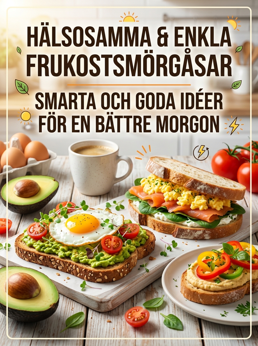 En god frukost sätter tonen för hela dagen! Här hittar du nyttiga och enkla frukostsmörgåsar som ger dig energi och håller dig mätt fram till lunch. Från proteinrika äggmackor till fräscha grönsakssmörgåsar – alla är färdiga på under 10 minuter. Perfekt för stressiga vardagsmorgnar! ☀️