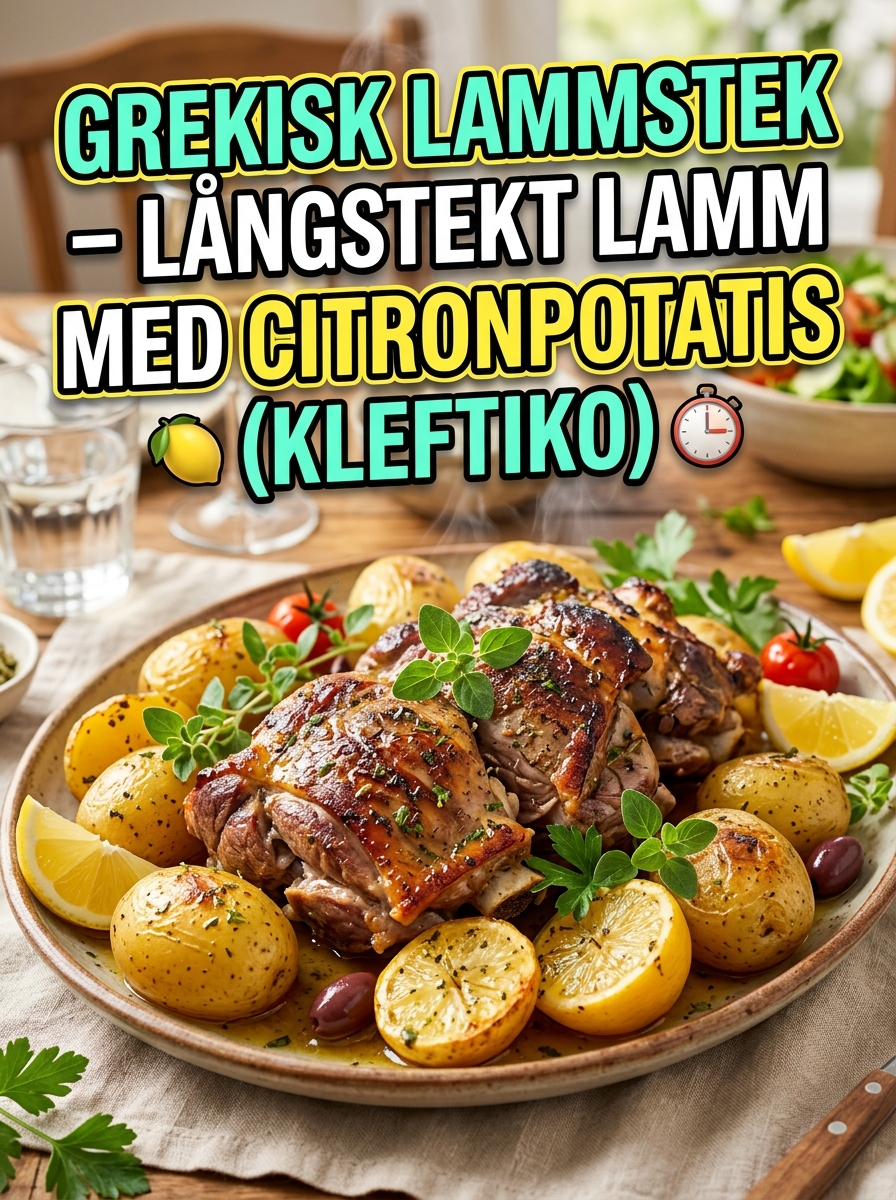 Drömmer du om mört, saftigt lamm som faller isär vid minsta beröring, omgivet av gyllene citronpotatis och doftande av oregano och vitlök? Vill du bemästra en av det grekiska kökets mest älskade helgrätter – en rätt med historia från grekiska frihetskämpar? Söker du den perfekta festmåltiden som imponerar utan att kräva konstant uppmärksamhet?Då är äkta grekisk Kleftiko exakt vad du behöver! Denna legendariska lammstek ärmer än bara mat – det är en historia om motstånd och överlevnad frångrekiska Klephts som tillagade den under jord medan de kämpade mot ockupationen. Idag är KleftikoGreklands mest älskade helgrätt: lammlägg som får långsamt tillagas i timmar, omgivet av skivad potatis, tomater, lök och hela vitlöksklyftor, allt genomsyrat avcitron, olivolja och berg av oregano. Resultatet? Kött så mört att det smular,potatis som sugit upp alla safter, och en doft som fyller hela hemmet.Förbered dig på en ny familjefavorit! 🇬🇷🐑🍋
