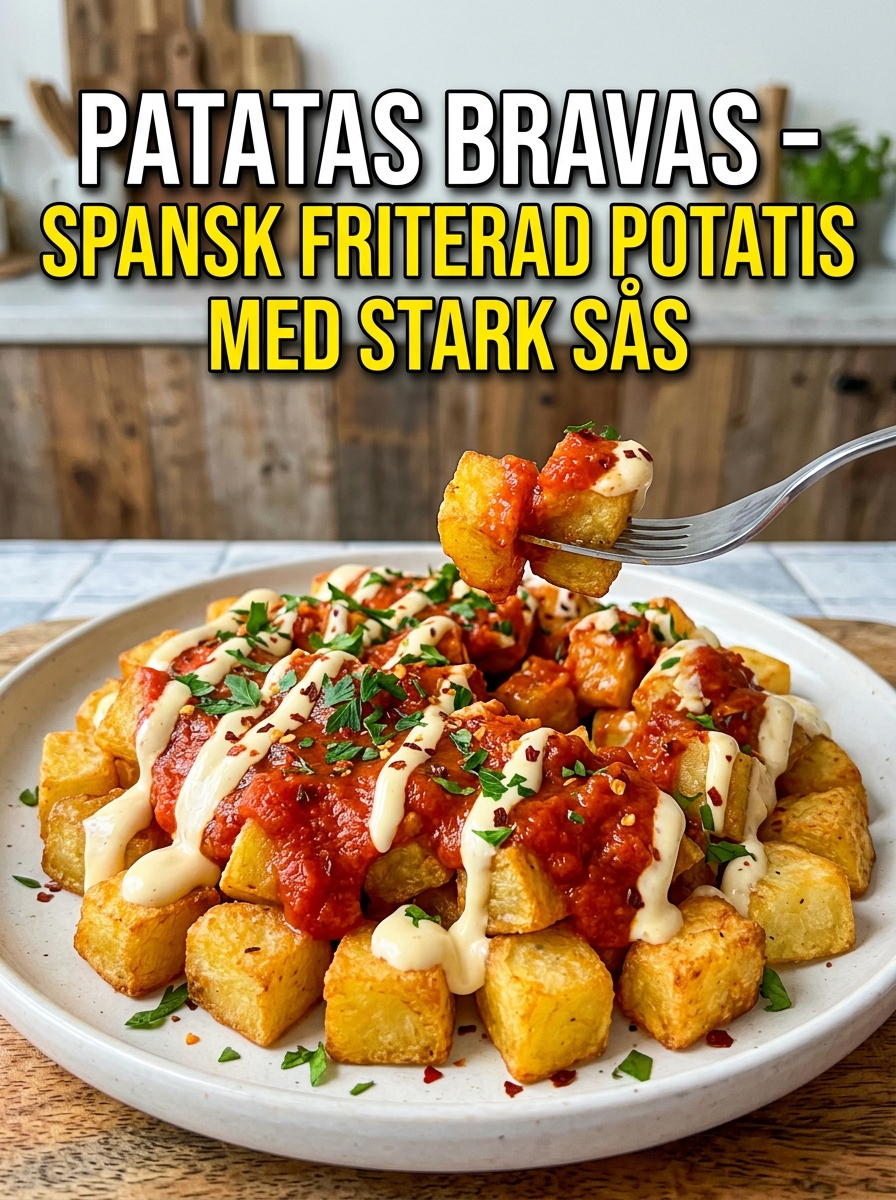 Har du någonsin suttit på en tapasbar i Madrid eller Barcelona, tittat på en skål gyllene, krispiga potatiskuber toppade med röd, rykande Bravas-sås och vit aioli, och känt doften av vitlök, paprika och friterad potatis som får salivkörtarna att gå i överdrift? Har du försökt göra Patatas Bravas hemma men undrat varför potatisen inte blev lika krispig, varför såsen inte färgades lika vackert röd, eller varför det inte smakade lika äkta som i Spanien? Idag ska vi avslöja hemligheterna bakom Patatas Bravas – Spaniens mest älskade tapas! 🇪🇸🥔🔥